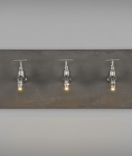 1,829kr  inkl momsVägglampa i grå cement, kranar i nickel matt.